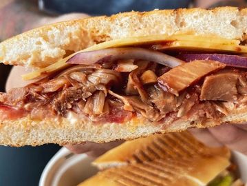 BBQ shredded jackfruit with tomato, onion, jalapeños & cheese w/ a chipotle aioli sauce