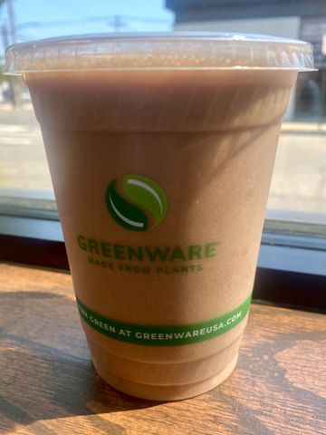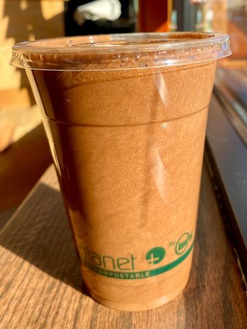 Bananas, cacao, coffee, cinnamon, clove, nutmeg, ice, oat milk, dates & agave